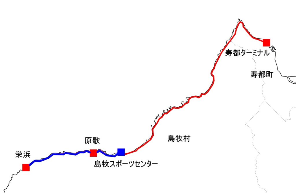 ニセコバス・島牧線は、2025年春から土日祝日の運行をやめ、代わりに村営バスが走ることとなった。同社が島牧から撤退しようとしていると推測、その前に歩きたいと思っていたが、高速いわない号→雷電線→島牧線で栄浜に行くことはできるものの、日帰りは不可能であった。そこで今回は、車でドロップオフ・ピックアップしてもらい、寿都に一泊する(ペンションメローさん)ことにした。