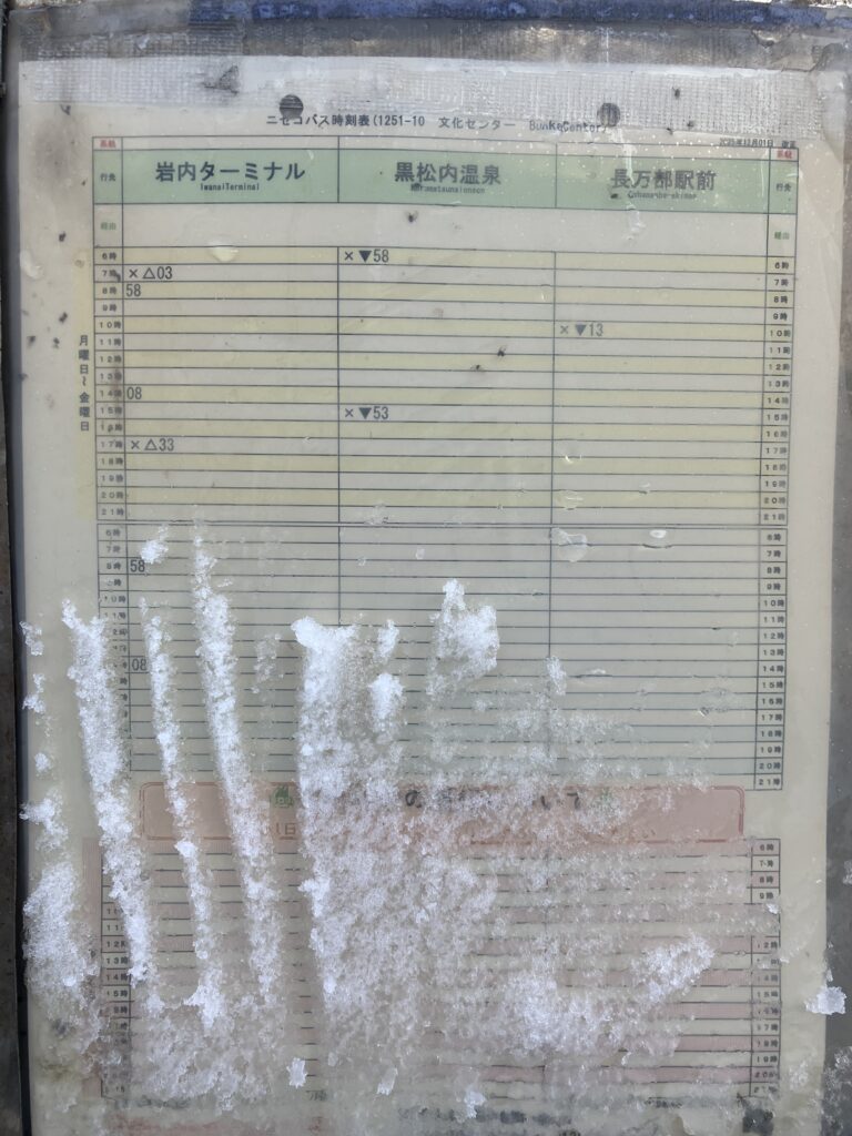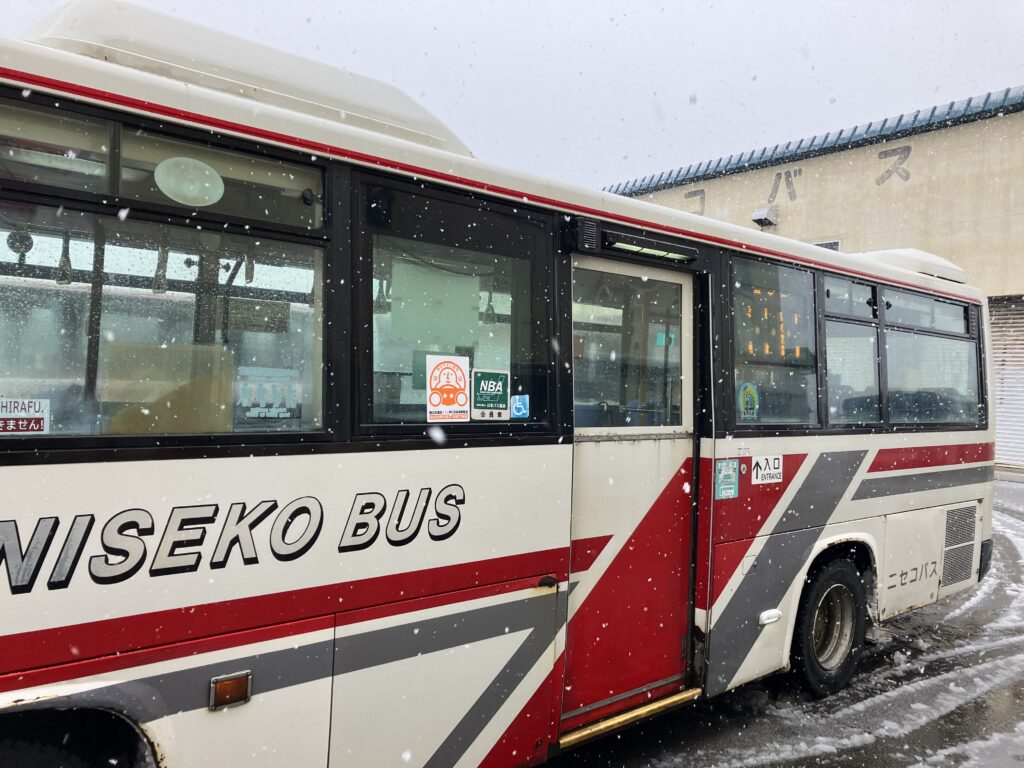 さて寿都ターミナルに戻ると、たしかにニセコバス・栄浜行きがいる!今日は12月8日月曜日、平日なのでニセコバスによる運行なのである。