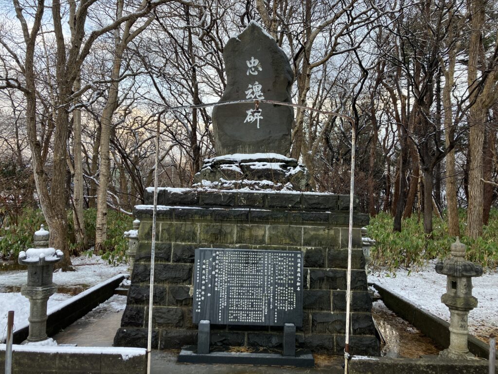 「この忠魂碑は日清戦争以後戦没された郷土出身の軍人および軍属の栄誉を讃え国に盡した「まごころ」を後の世に伝えるために大正六年十月寿都神社境内に建てられたものです、明治維新以後我が国の近代化が急速に進むととともに諸外国の干渉も多くなり明治二十七八年には新穀、明治三十七八年には満州を線状に大国である露国、又大正三年㐧一次世界大戦に独逸国と戦火を交え、さらに昭和六年満州事変、同十二年、日支事変を圣て同十六年、大東亜戦争に拡大、太平大西の両洋に亘る広範な地域で激烈な戦闘を繰り広げ昭和二十年八月十五日の終戦に至るまで、本町に於いても二百名を超す方々が尊い生命を国に捧げ祖国の礎となりました。戦後も数多くの人々が異国の空で抑留生活や強制労仂を強いられ母国を夢見ながら異郷の土と化した方々もありました、これらの春秋に富む若い多くの人達の生命が失れたことは悲しくも惜しむべきことであります、