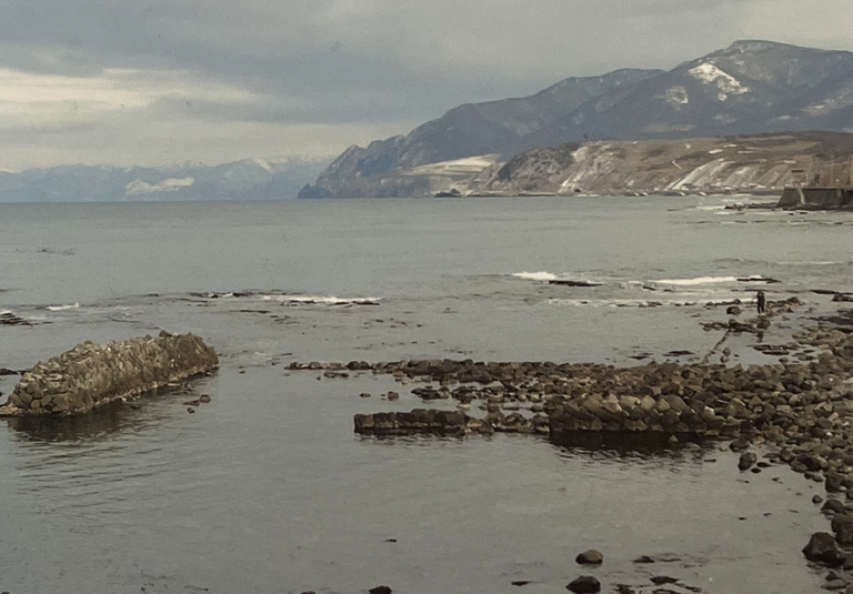 袋澗とは、ニシン漁の網元の番屋の前浜でニシンを袋網に入れ、一時的な保管場所としたもの。船溜まり、避難港、船着き場としても利用されたという。雷電線を歩いていた際には特に気にも留めていなかったが、ペンションメローさんで山本竜也氏の「寿都五十話」という本を読んで初めて意識するようになり、今回海岸風景に着目していたのである。彼によると支柱の跡があると袋澗である可能性が高いのだという。ちなみに前回は道の駅にて同氏の「続寿都歴史写真集 昭和二十一年~」、今回は「南後志-寿都・島牧・黒松内-に生きる」を購入した。もっとも、今回は旅の始めに本を買ったおかげで、ずっとこれを背負って歩く羽目になってしまった。