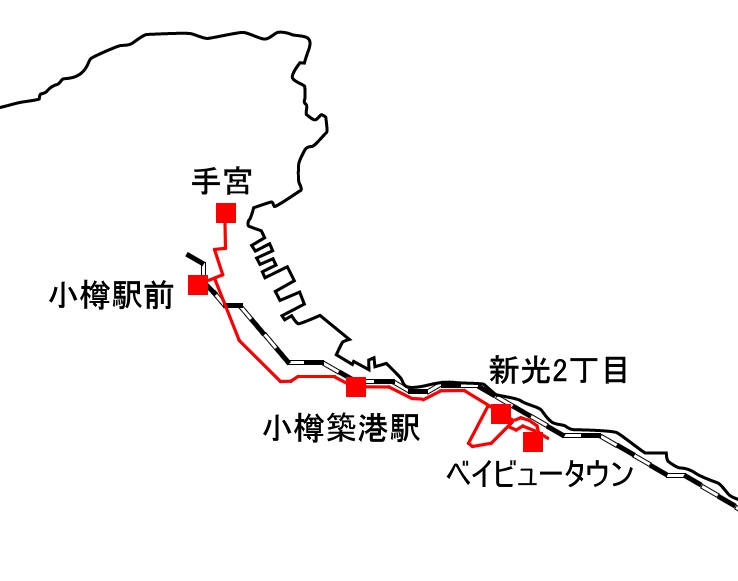手宮⇔小樽駅前⇔小樽築港駅⇔新光2丁目⇔ベイビュータウン