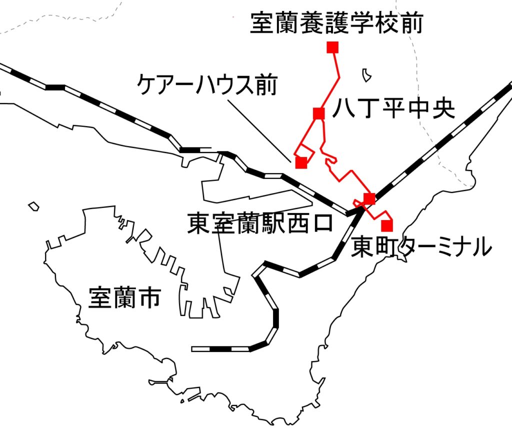 以下は八丁平中央から室蘭養護学校へ向かう循環コース。