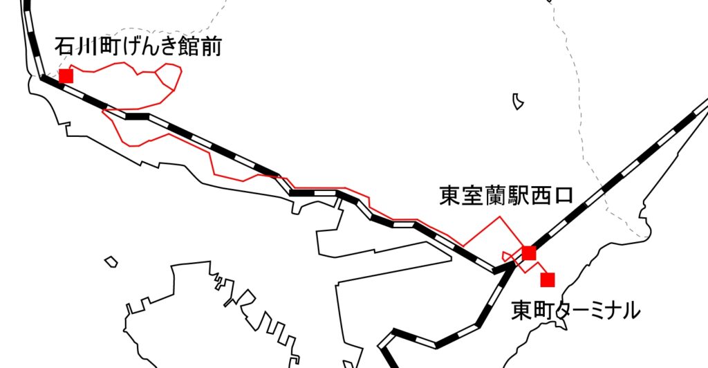 以下は八丁平中央から室蘭養護学校へ向かう循環コース。