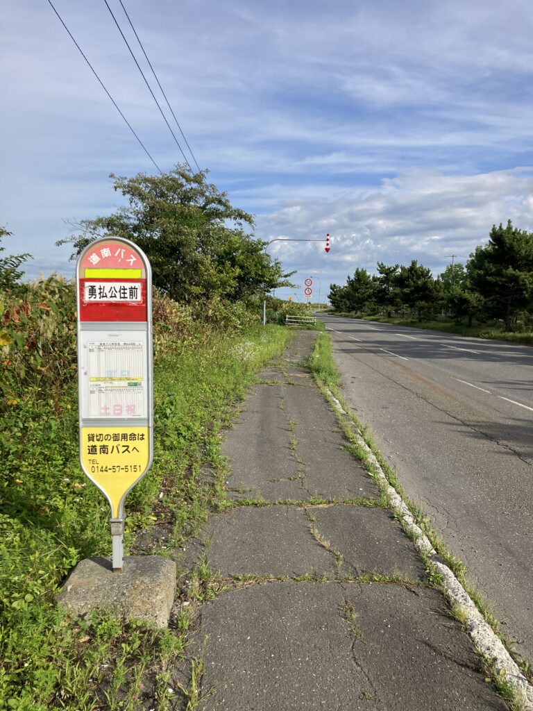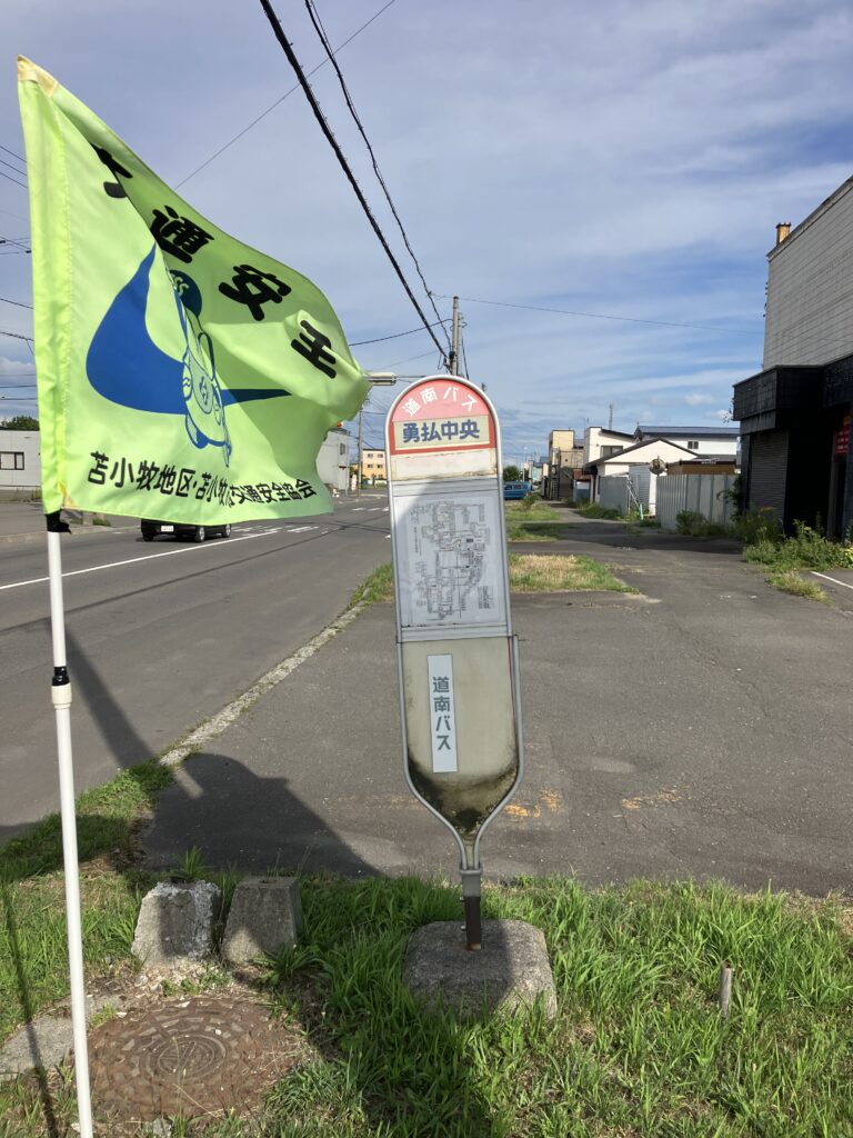 ちなみに、JR勇払駅前には「駒澤大学前」と書かれた停留所が立っている。