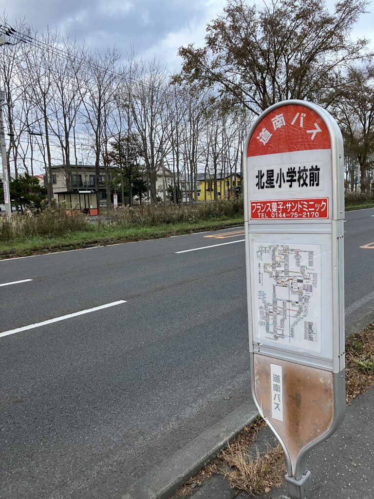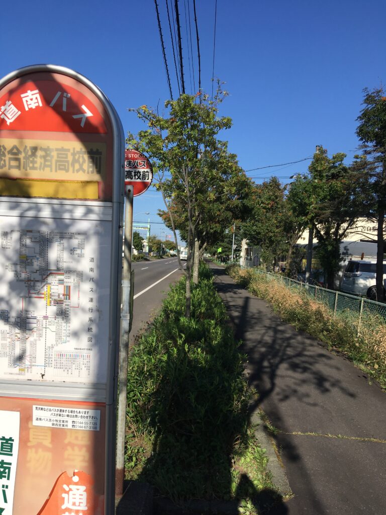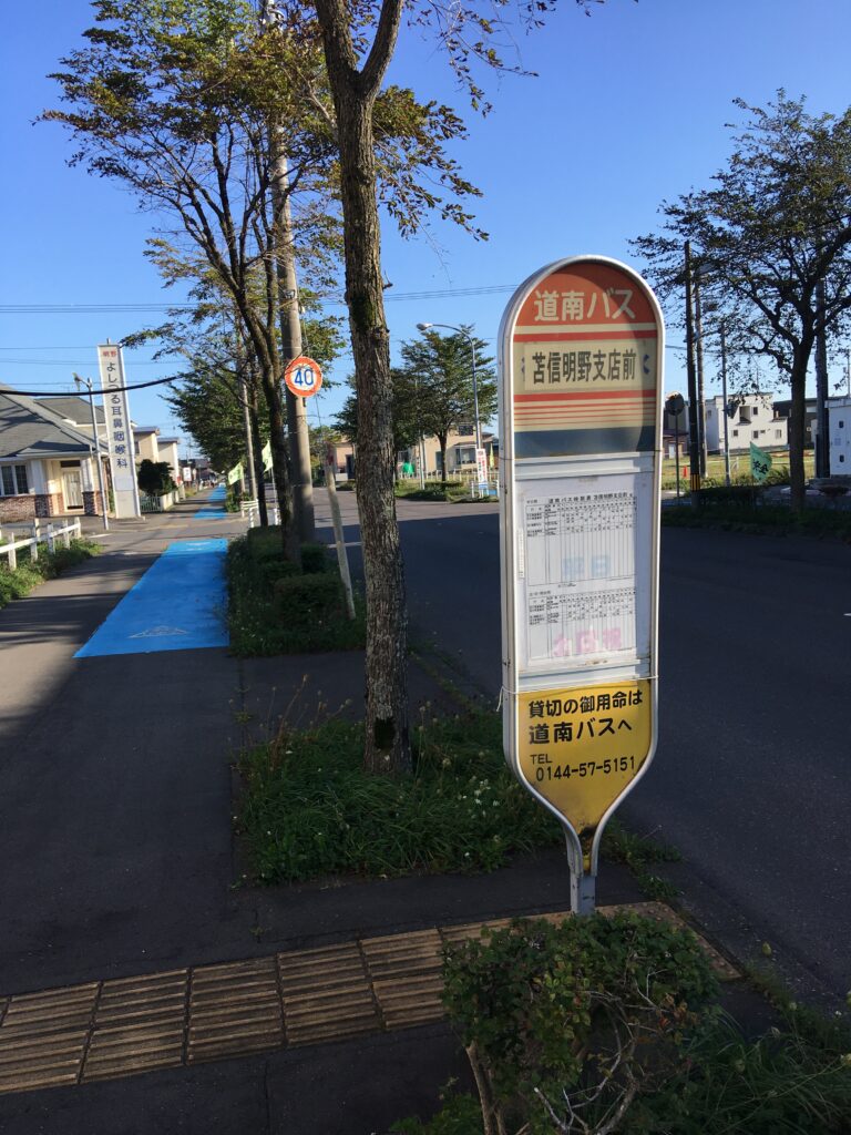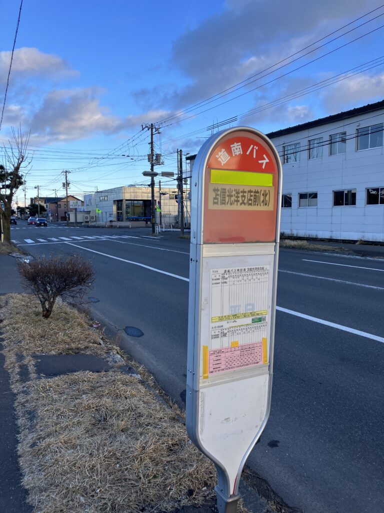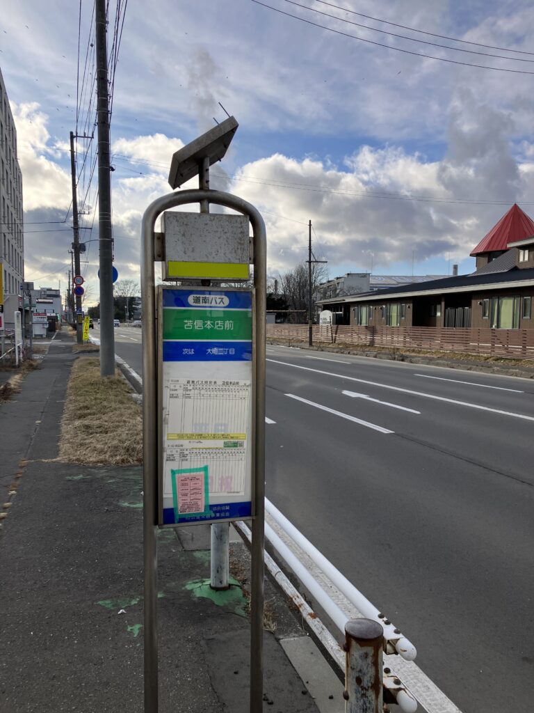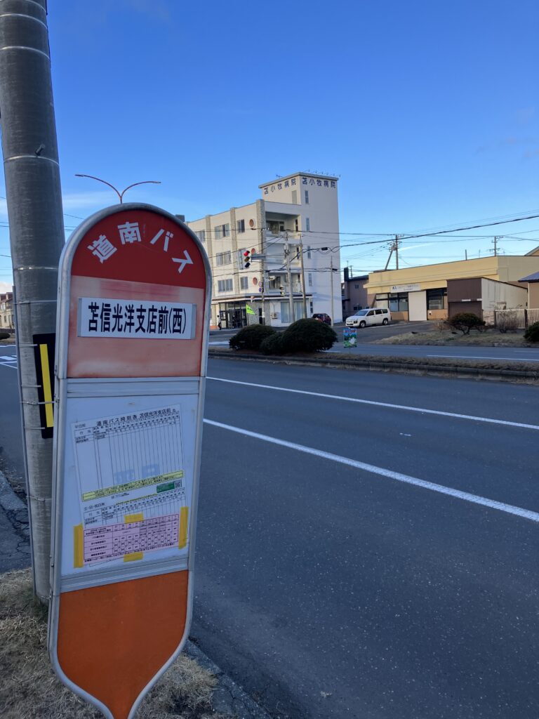 ちなみに、JR勇払駅前には「駒澤大学前」と書かれた停留所が立っている。