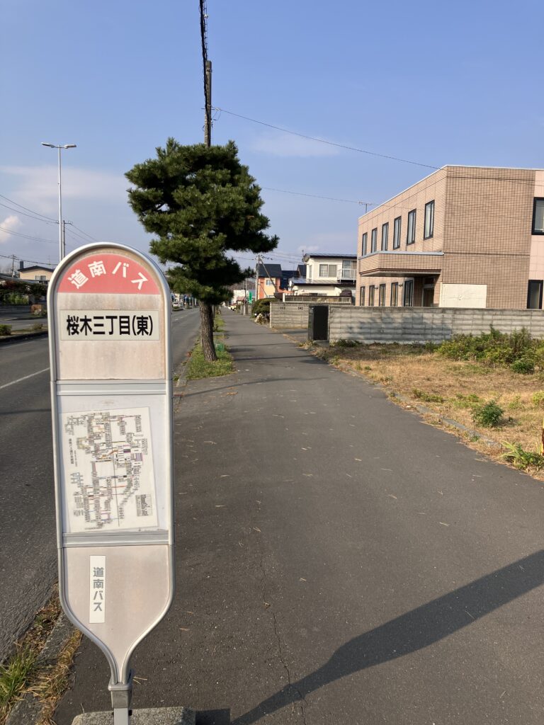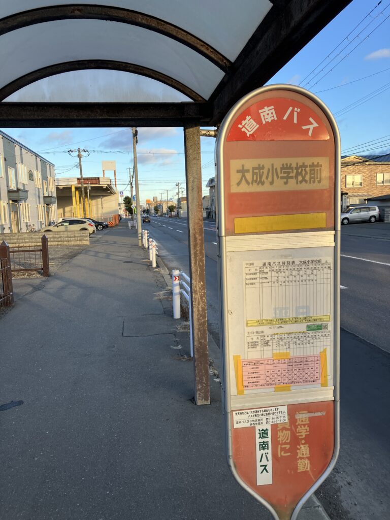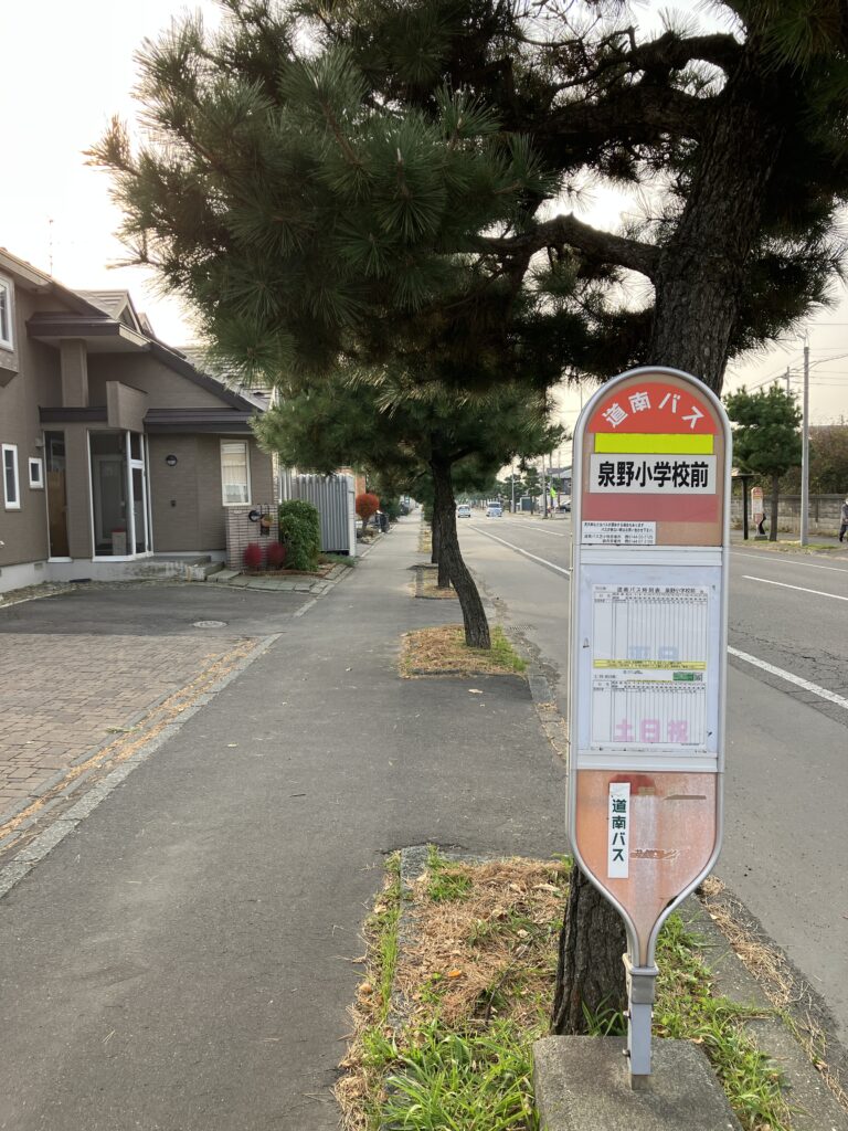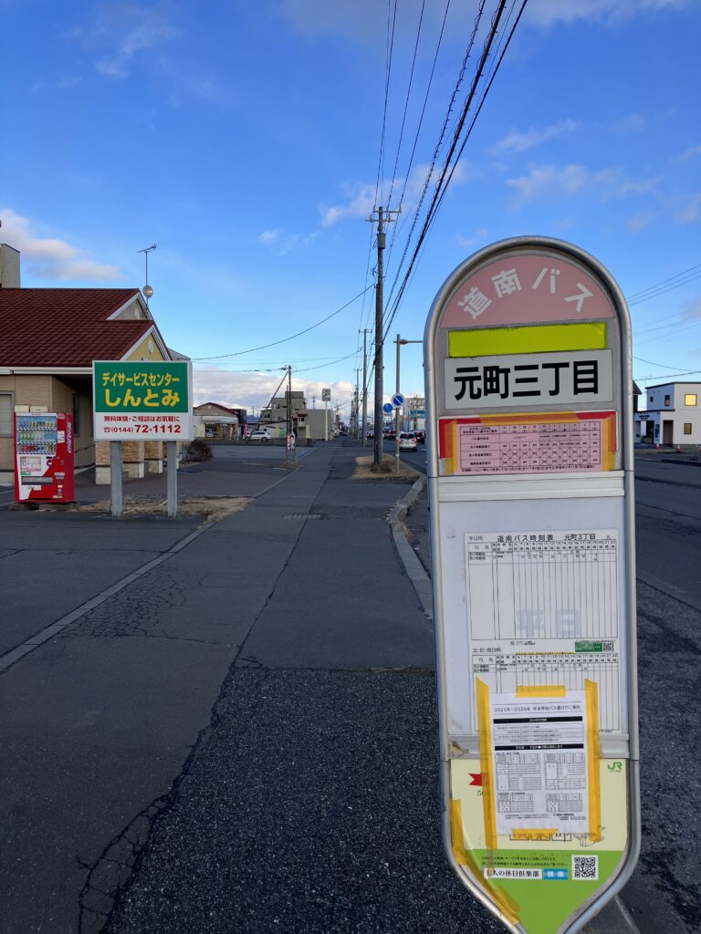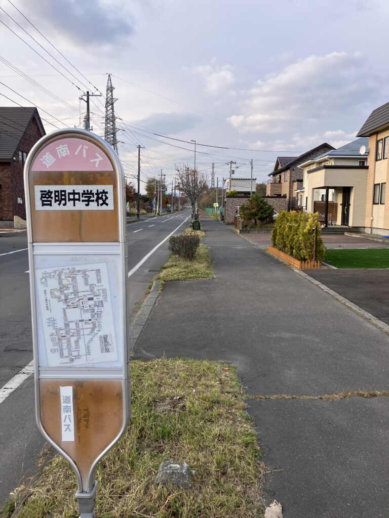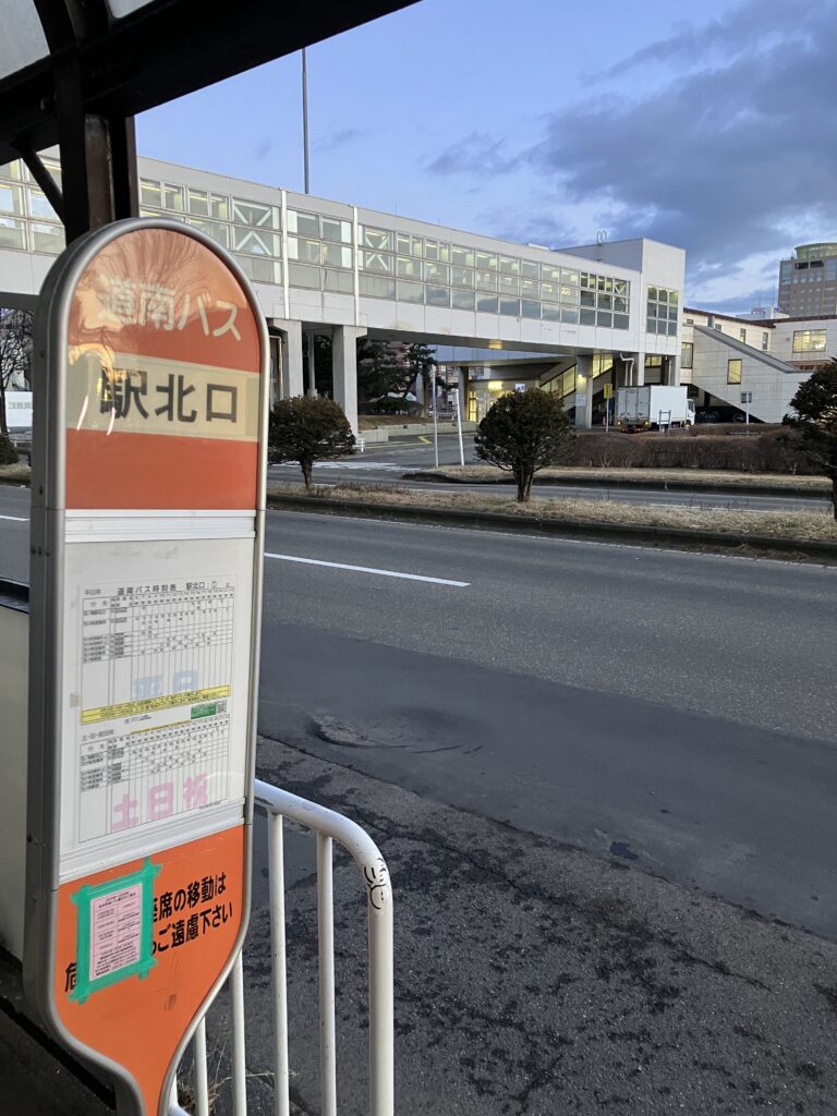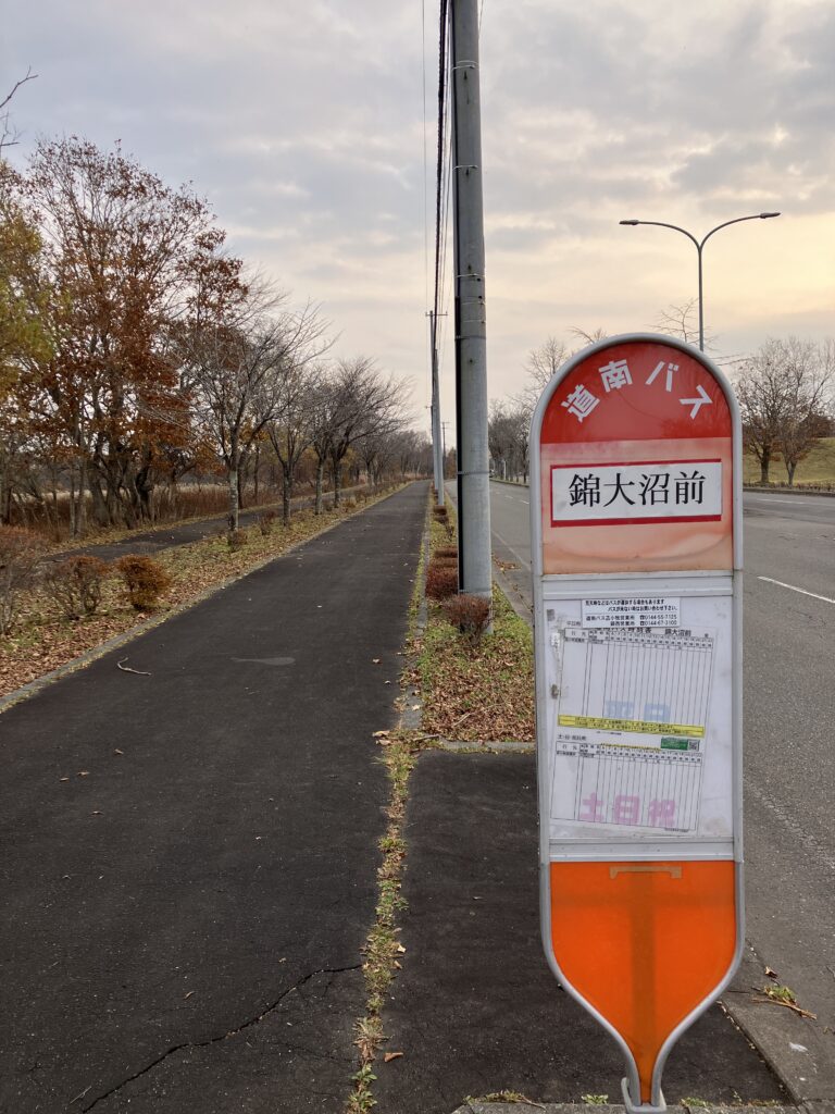 ちなみに、JR勇払駅前には「駒澤大学前」と書かれた停留所が立っている。