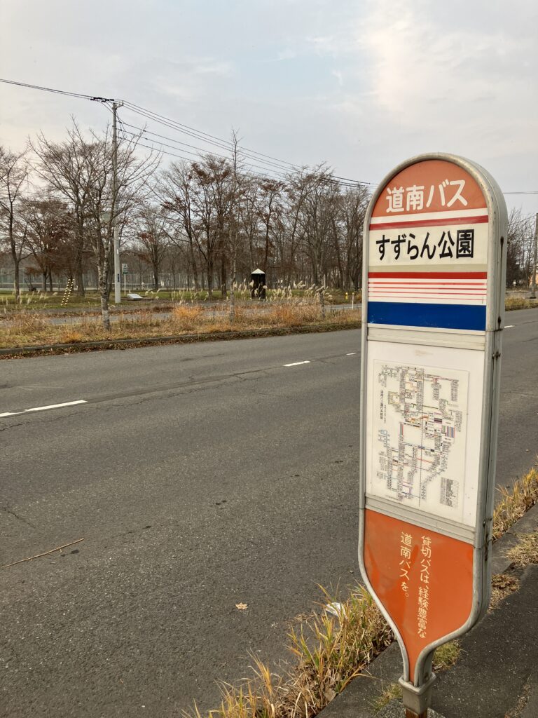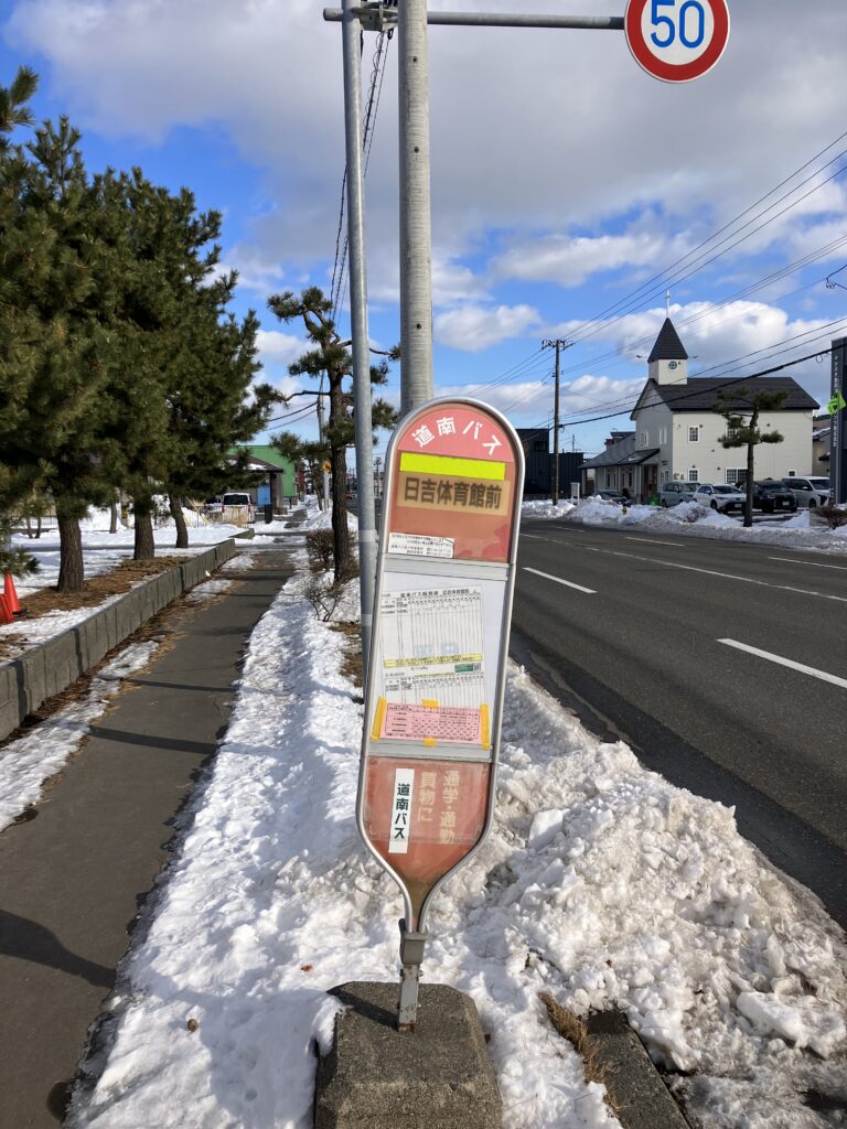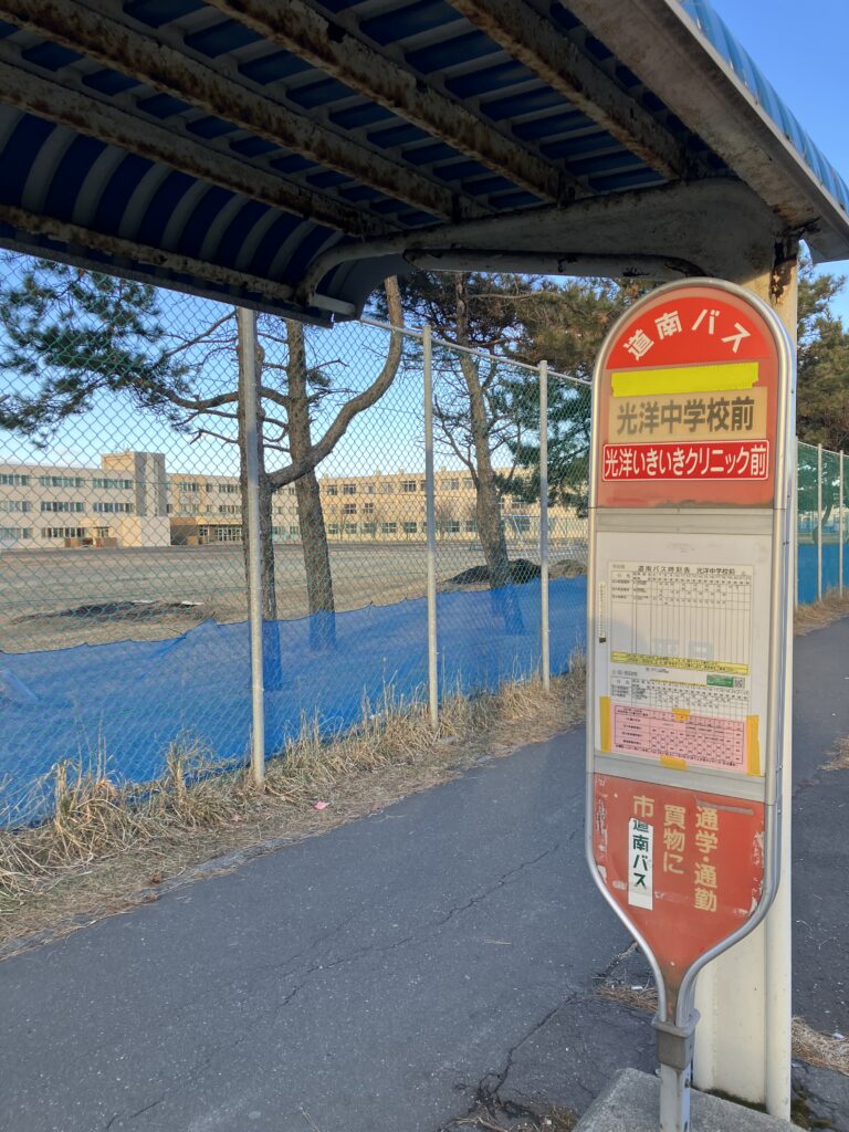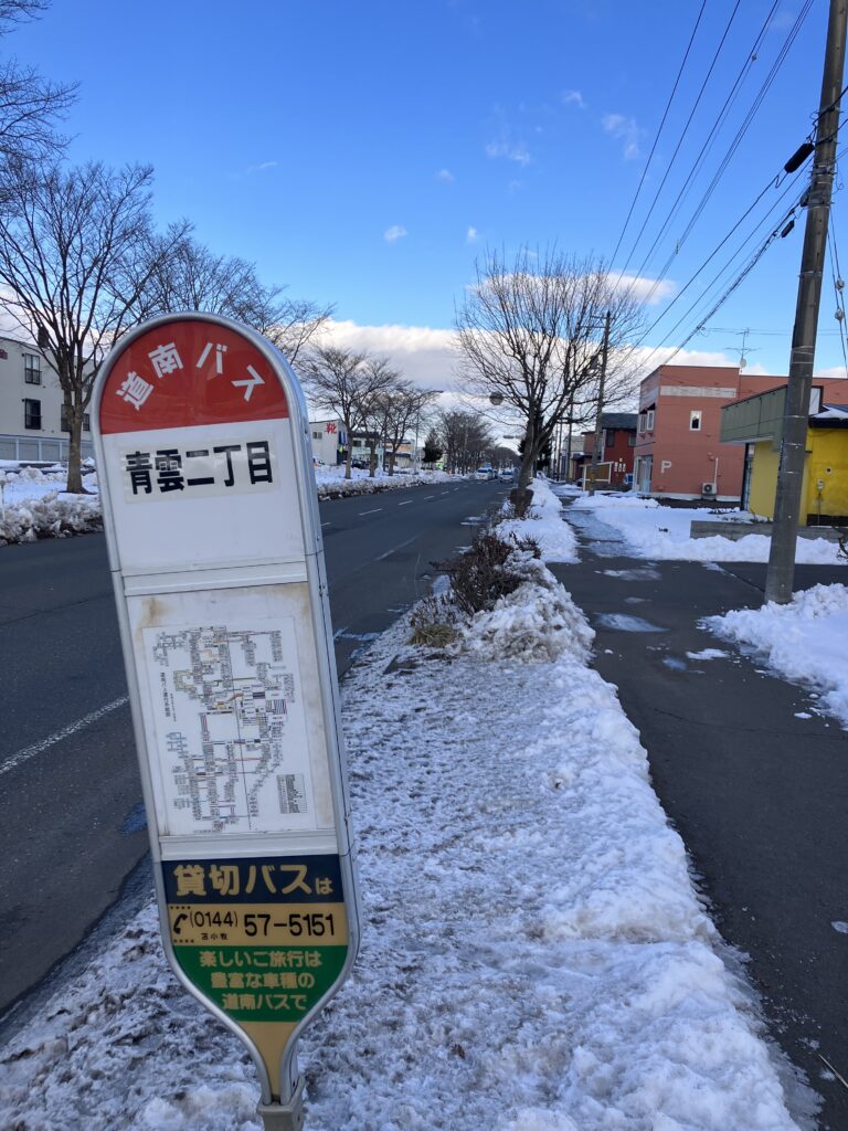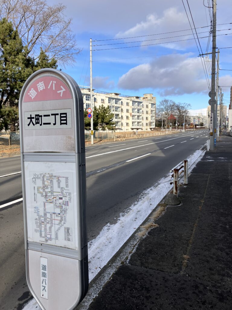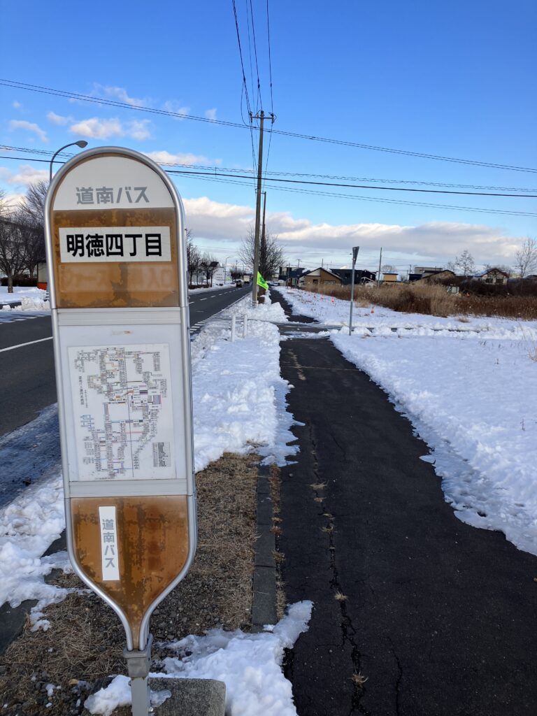 ちなみに、JR勇払駅前には「駒澤大学前」と書かれた停留所が立っている。