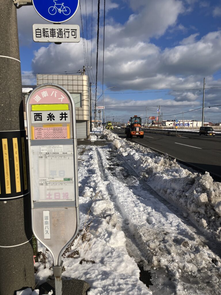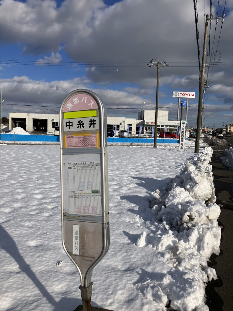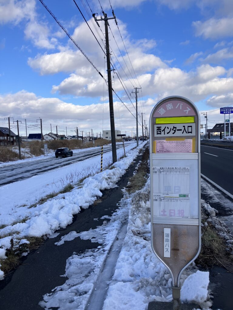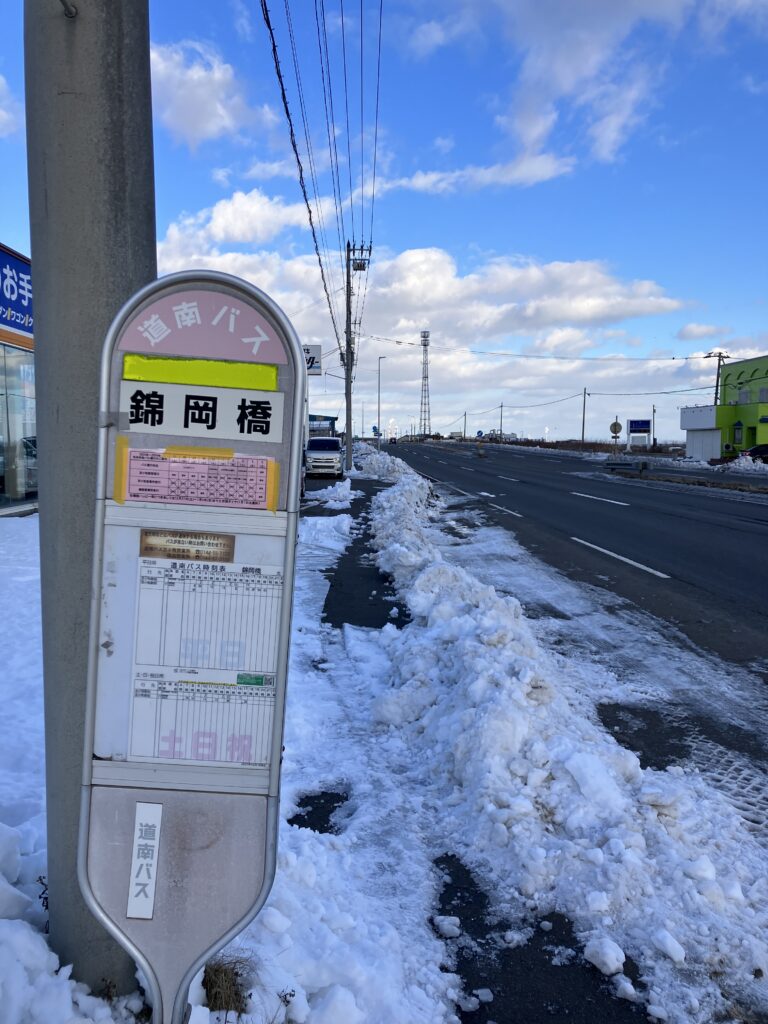北錦岡 (12/18/2025) – インターの入口が見える。帰りのバスが来るか半信半疑だったが。。。