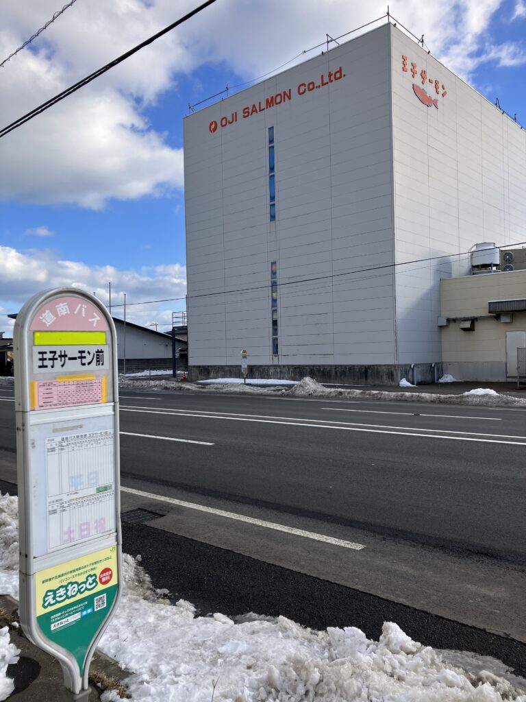 おそらく、日本製紙工場の近くにある「学生臨時便」停留所は旧「勇払東」停留所の名残であり、「勇払駅前」停留所も使用されないまま残っているのであろう。