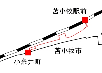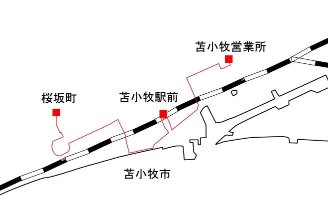 市役所前⇔苫小牧駅前の区間は、有珠の沢線と同様。