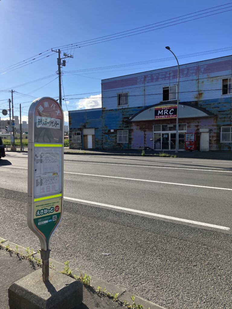 総合体育館前 (09/09/2022) – このあたりではあつまバス苫小牧線 日軽金前経由と同じルートをとる。