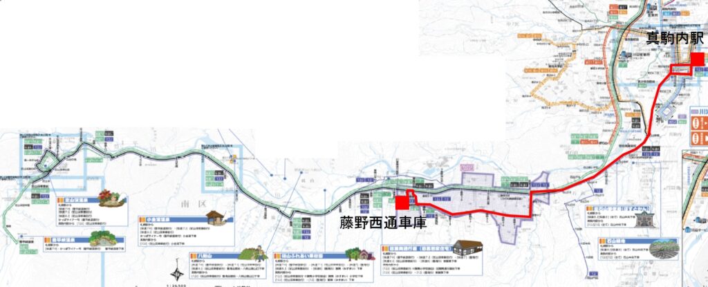 真駒内駅⇔藤野3条8丁目の区間は、12Hと同様。