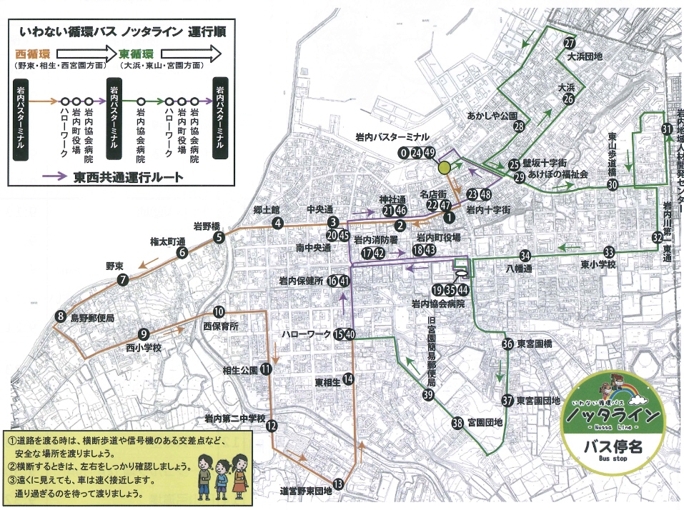 岩内町内をまわる循環路線。1日8便が運行されている。