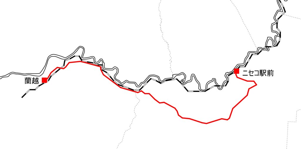 蘭越市街とニセコ駅前を結ぶ20kmほどの路線。平日のみ1日2往復。ニセコエリアの国際リゾート化に伴い、町の賑わいも山側に移ったように思えるが、この路線は国道5号線を走り、昆布駅を経て、昔ながらのニセコ町福井、富川、黒川といった集落をめぐる。(註: 本路線は2025年11月30日をもって廃止されました。)