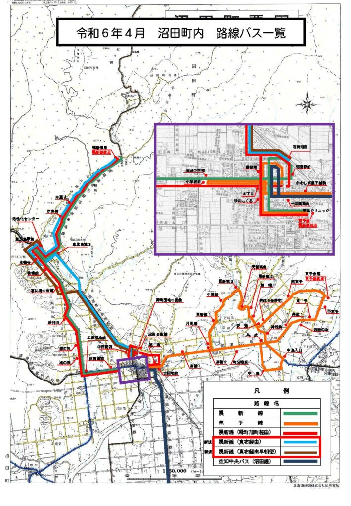 沼田町営バスの路線図は町のサイトに掲載されている。