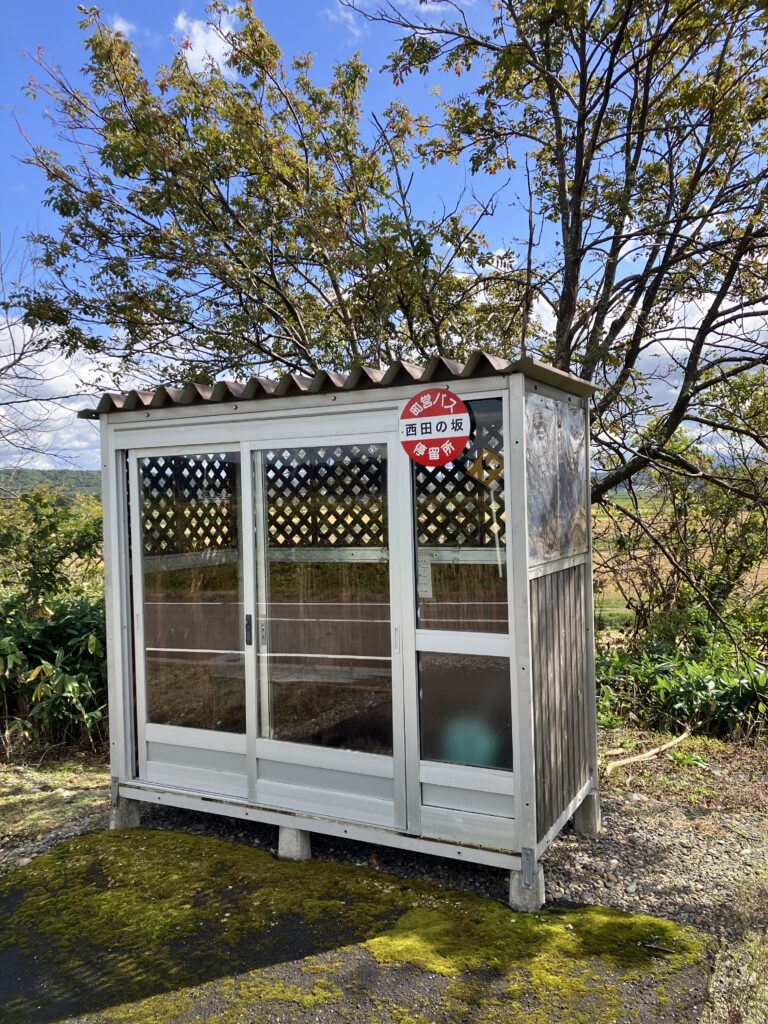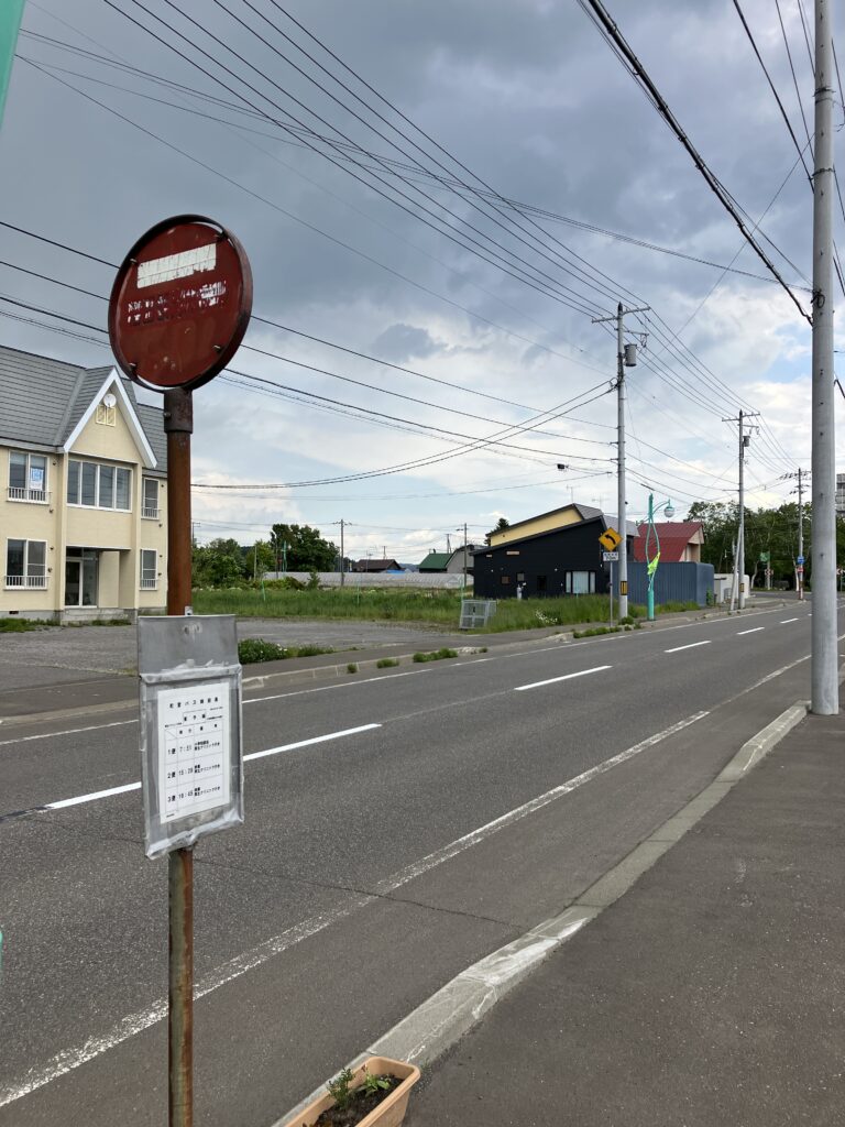 この停留所は2023年の時点では、判読不能な古い標識が置かれていた。その後新設してくれたようでありがたい。